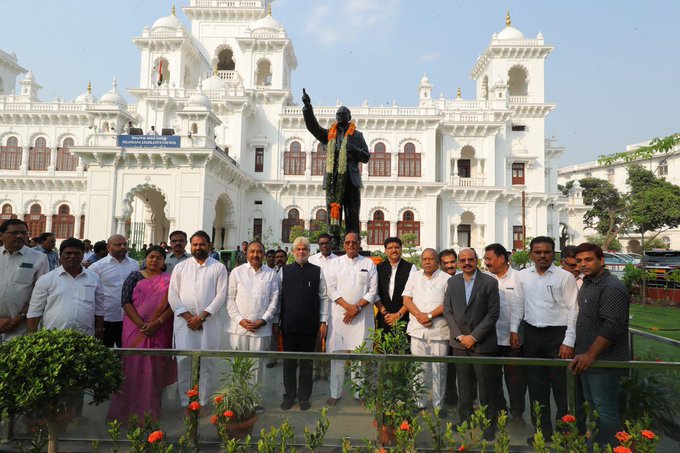 On the occasion of the 135th birth anniversary of B. R. Ambedkar, floral tributes were paid to his statue at the Assembly premises. Gutha Sukender Reddy, Gaddam Prasad Kumar, and…