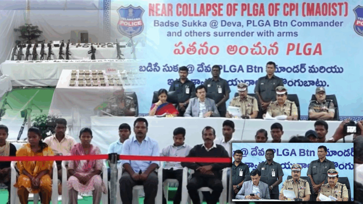 Telangana DGP Shivadhar Reddy ne bada khulasa karte hue kaha ki CPI Maoist party ke 20 cadres ne surrender kiya hai, jismein PLGA battalion commander Deva bhi shamil hai. Surrender ke dauran in cadres ne kul 48 high-quality weapons security forces ko saunpe.