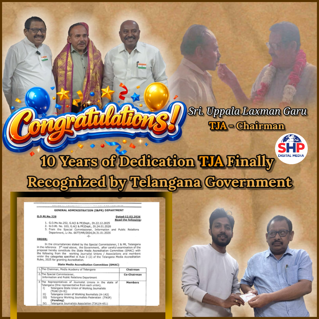 Importantly, after nearly ten years, the Telangana Government has officially recognized the Telangana Journalists Association (TJA) by including its representation in the State Media Accreditation Committee. The move is being seen as a major milestone for TJA and its members across the state.