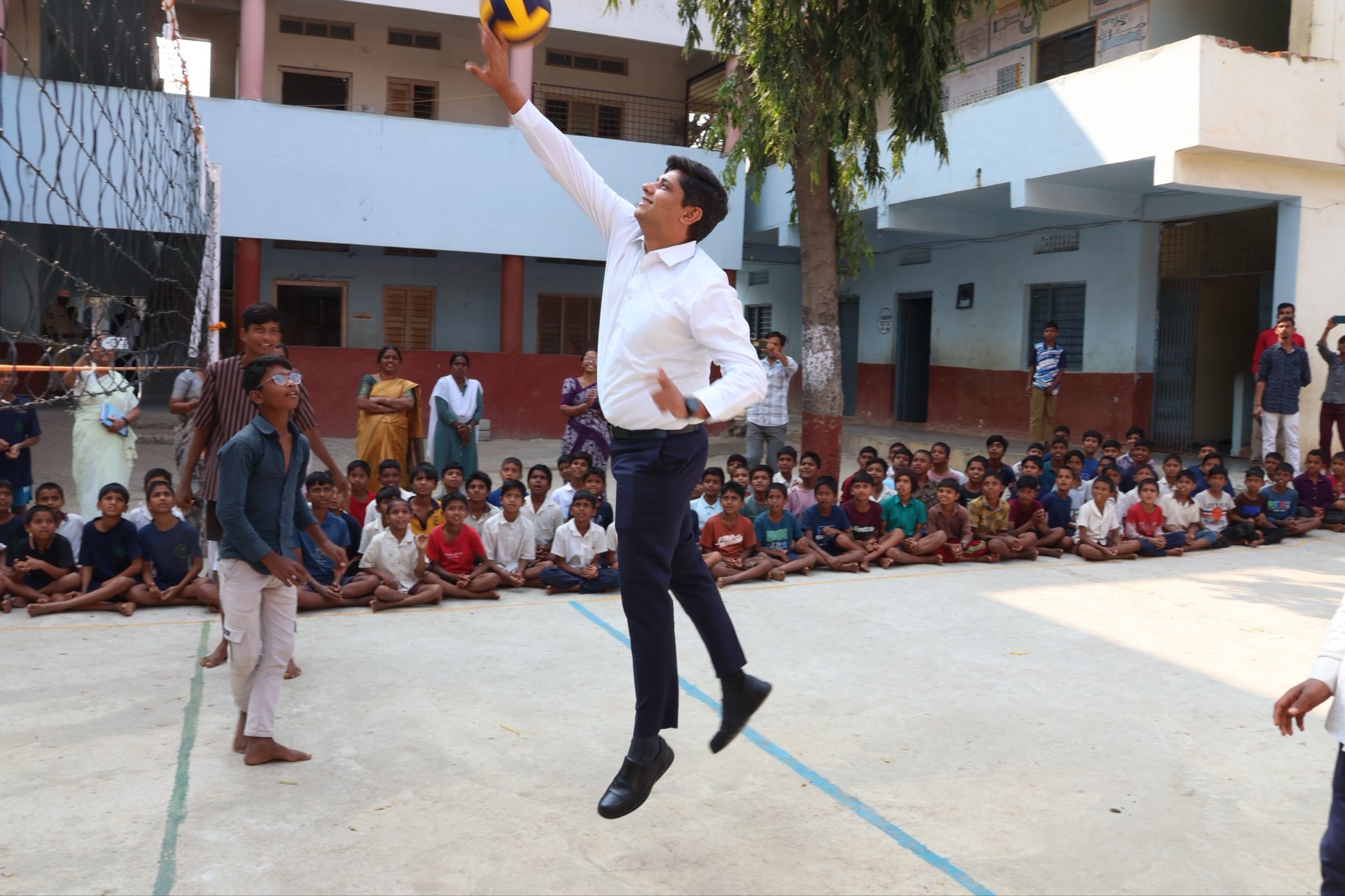In a gesture that boosted students’ morale, Collector Ashish Sangwan joined them in a friendly game of volleyball on the school premises, encouraging active participation in sports alongside academics.
