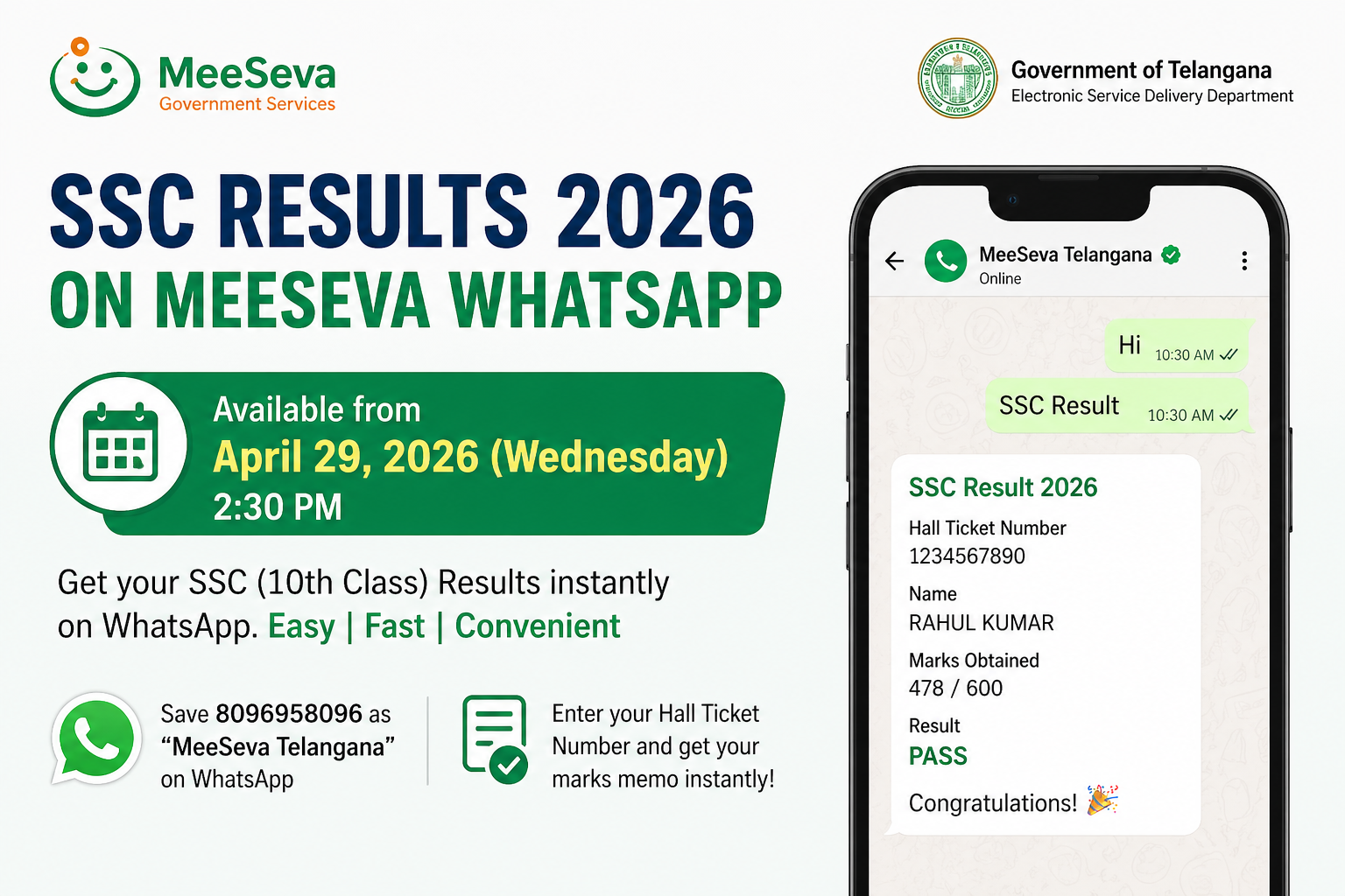 In a major relief for students and parents, the Telangana government has enabled access to SSC (10th Class) Results 2026 through the MeeSeva WhatsApp/Chatbot platform, eliminating the need to visit centres or depend on slow websites.